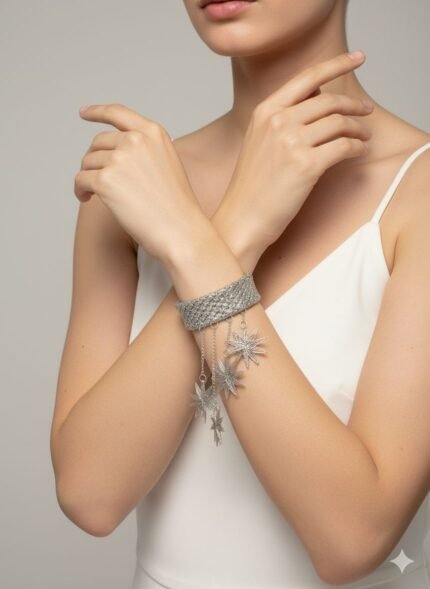 Elegant White Bead & Silver Floral Stretch Bracelet | Ethnic & Western Wear Accessory
