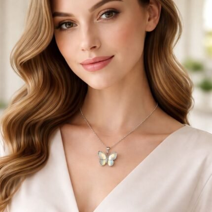 Adri Tribe Silver Butterfly Crystal Pendant Necklace