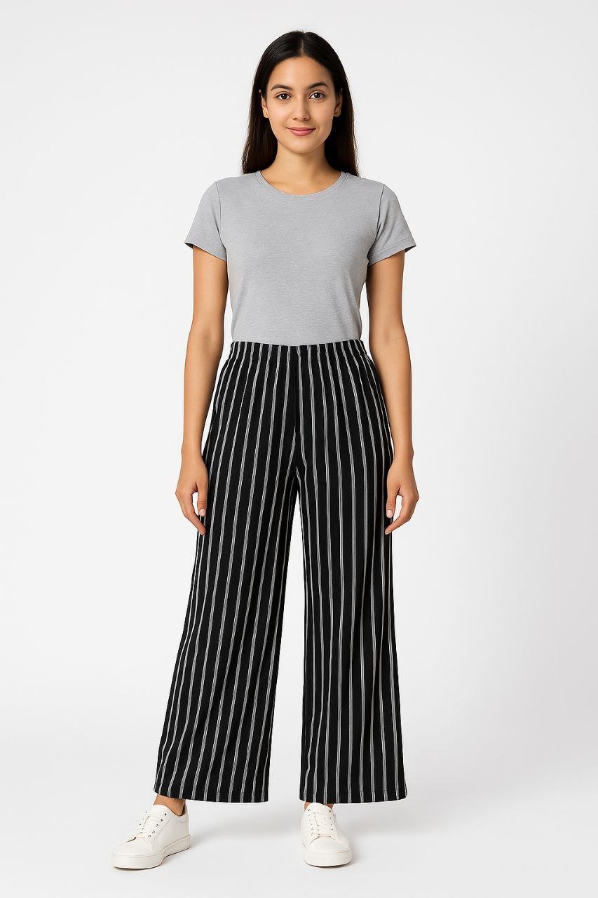 Black & White Striped Plazo Pants for Women | Casual & Daily Wear by AT