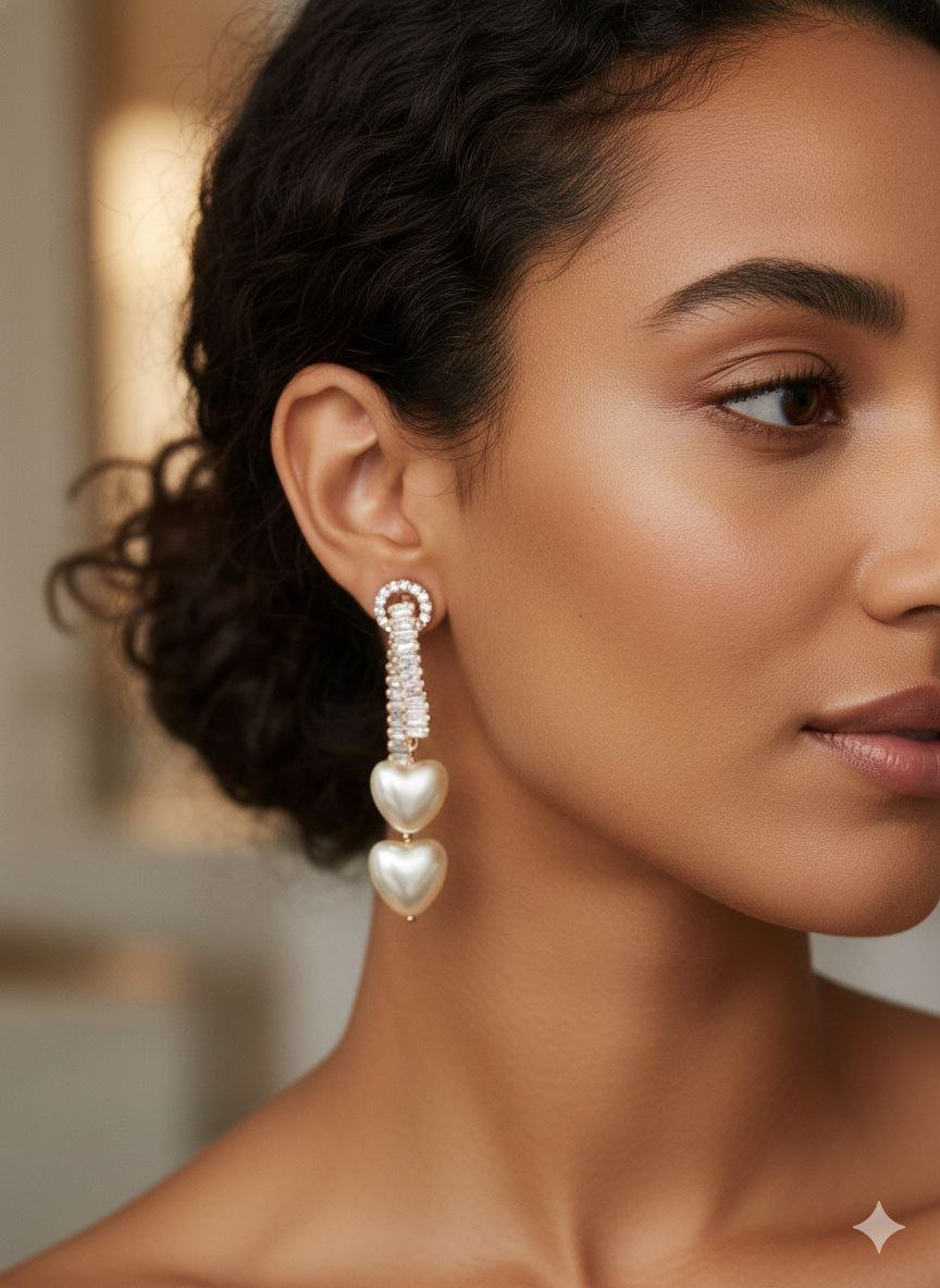 Double Heart Pearl Drop Earrings – ADRI TRIBE are designed to bring together soft romance and refined sparkle.