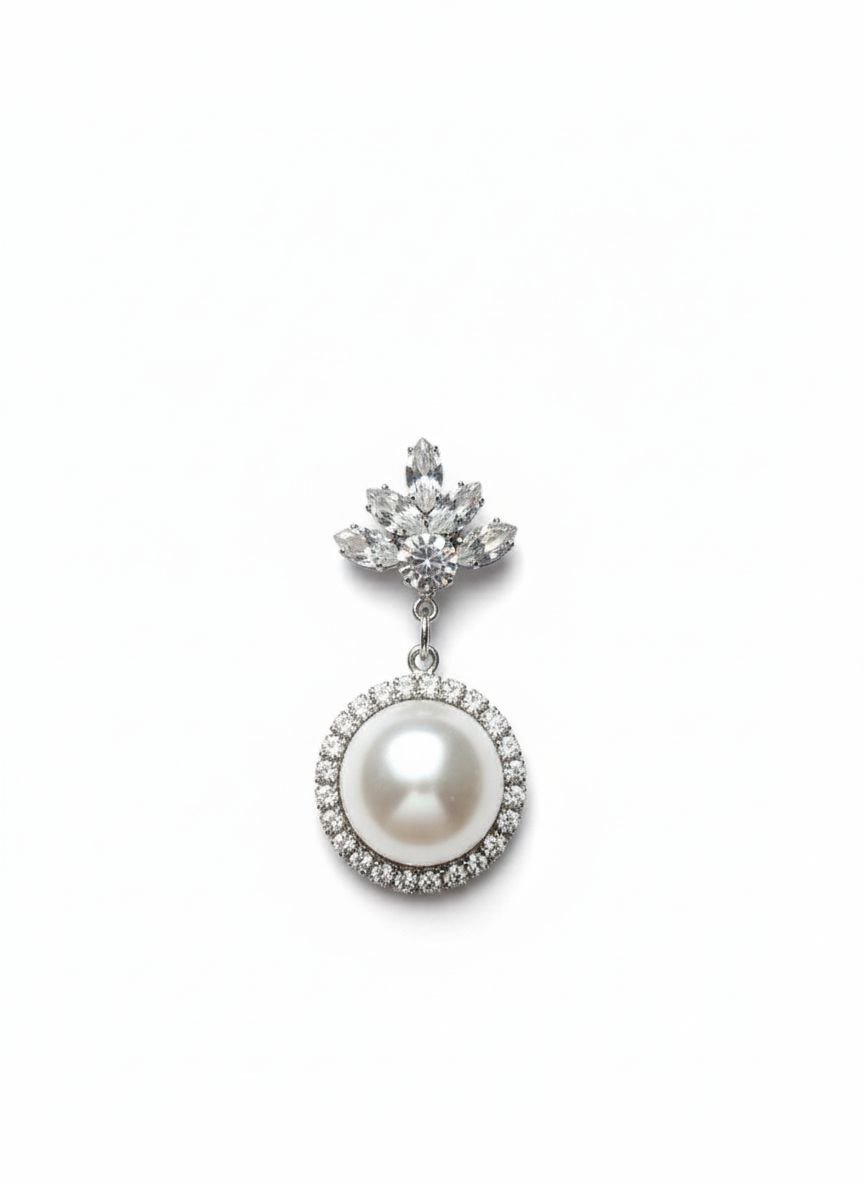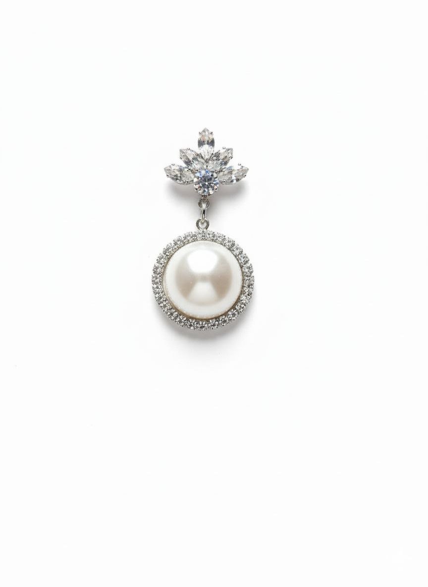 Featuring a floral cluster of sparkling stones and a smooth pearl drop surrounded by tiny crystals, these earrings are designed to elevate any outfit effortlessly.