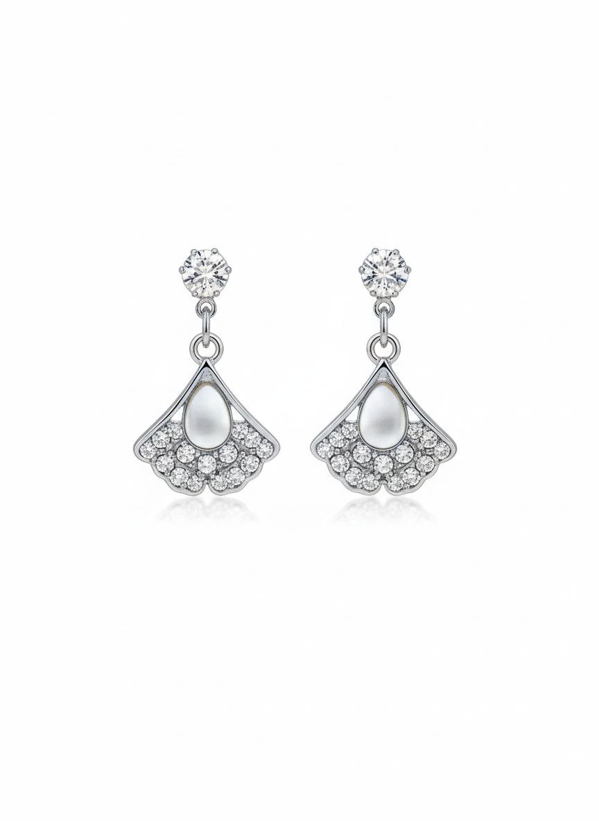 Add a touch of elegance to your look with these Silver Fan Shape Pearl Stone Earrings by ADRI TRIBE.