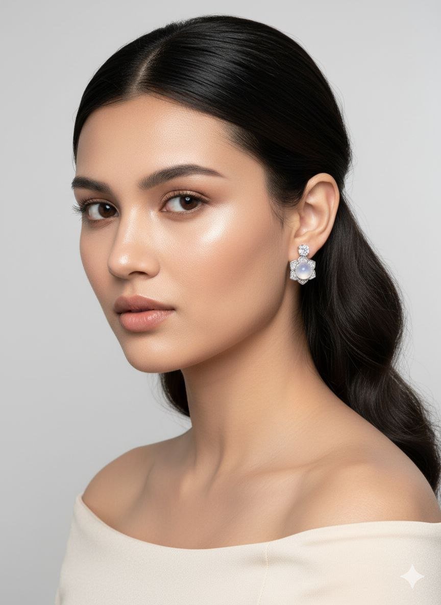 Beautiful silver-tone flower earrings with a white stone centerpiece and sparkling CZ work — perfect for daily use & special occasions ✨