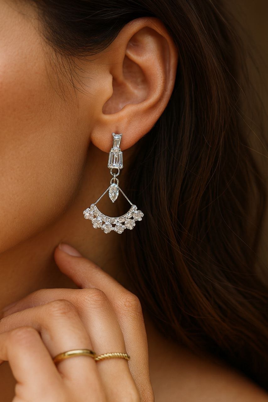crystal earrings, fan drop earrings, bridal jewellery, luxury earrings, party wear, ADRI TRIBE, statement accessories,