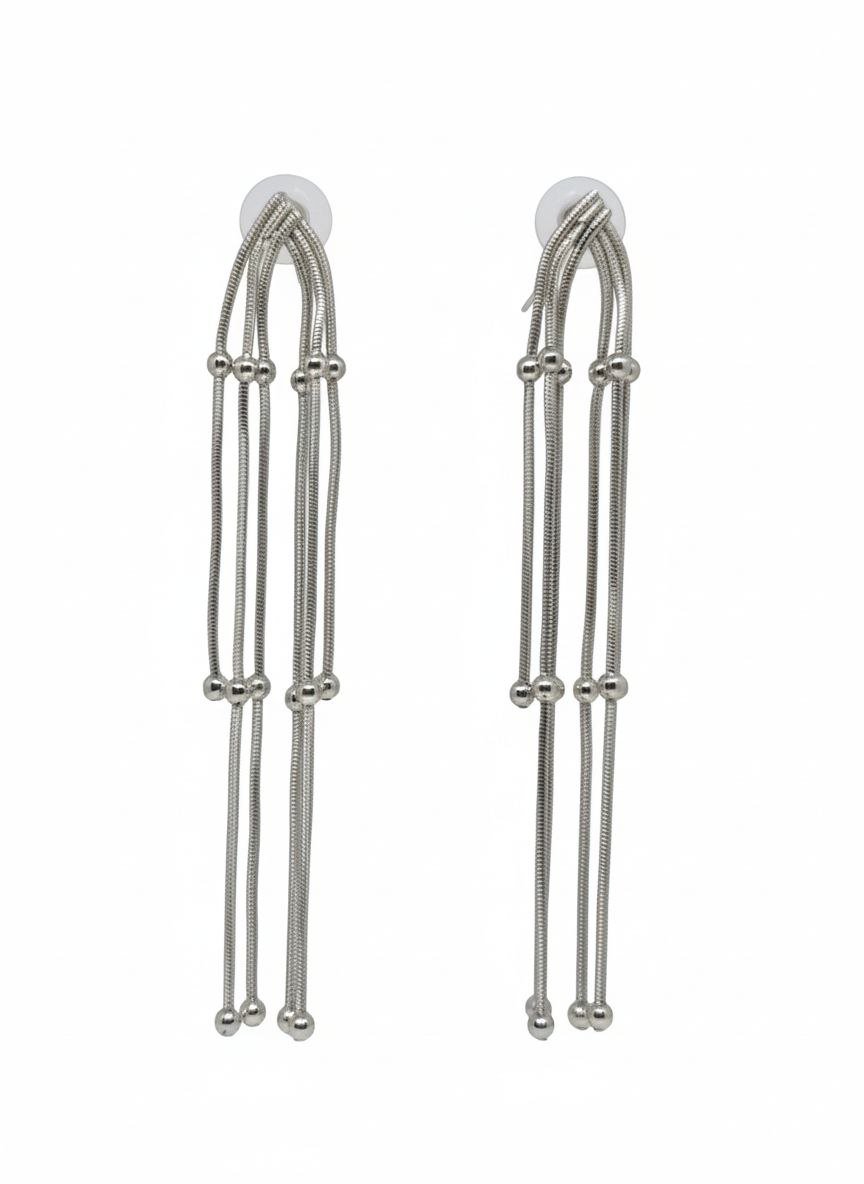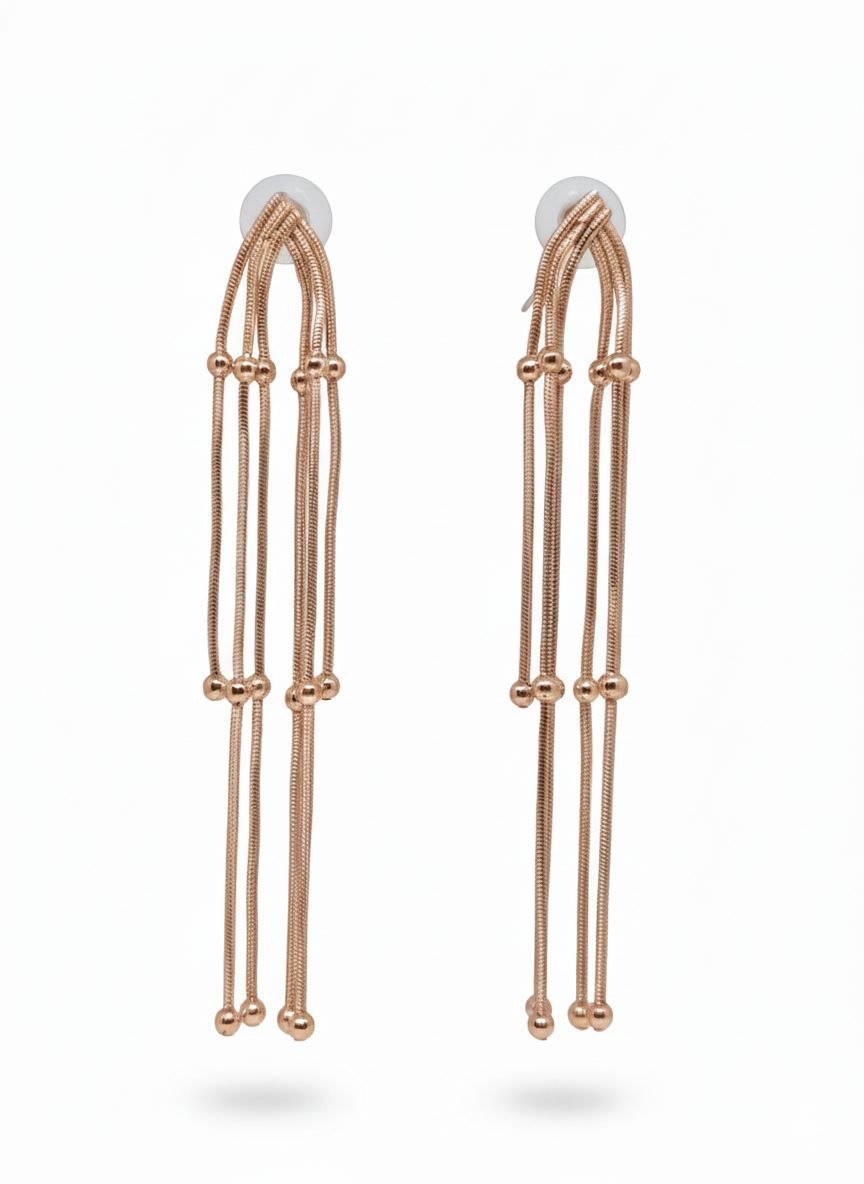 Elegant multi-chain drop earrings with a sleek layered design, available in silver and rose gold finish.