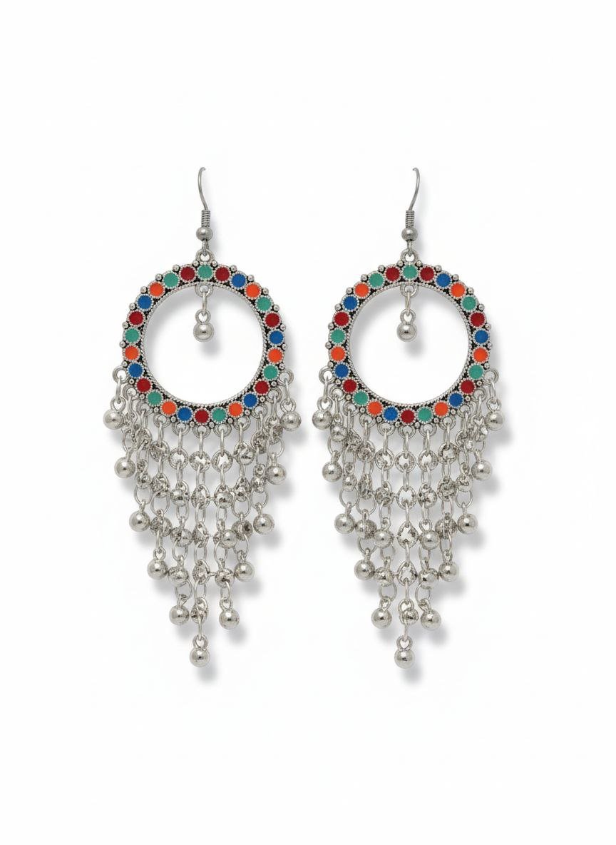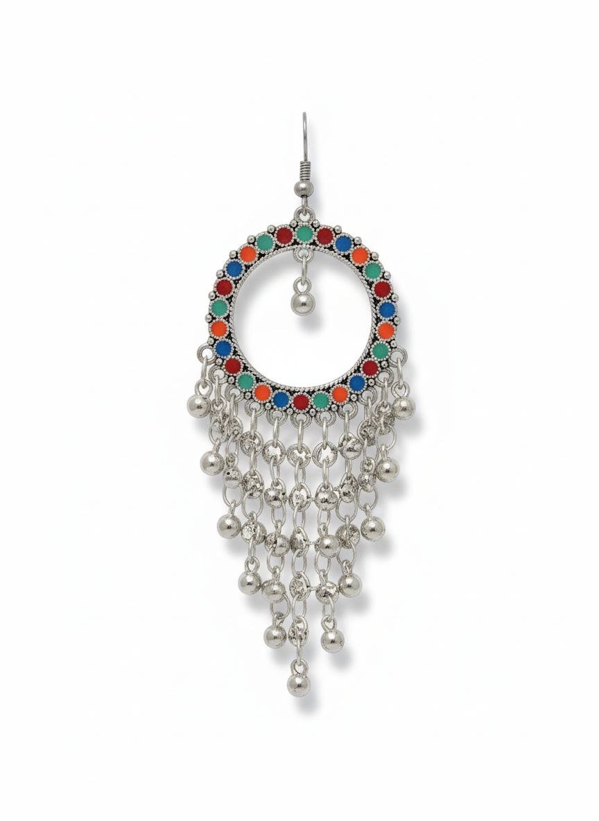 Crafted with a detailed circular frame and multiple ghungroo drops, these earrings bring a perfect mix of tradition and boho chic. Ideal for festive occasions, weddings, or styling with kurtis, sarees & Indo-western outfits.