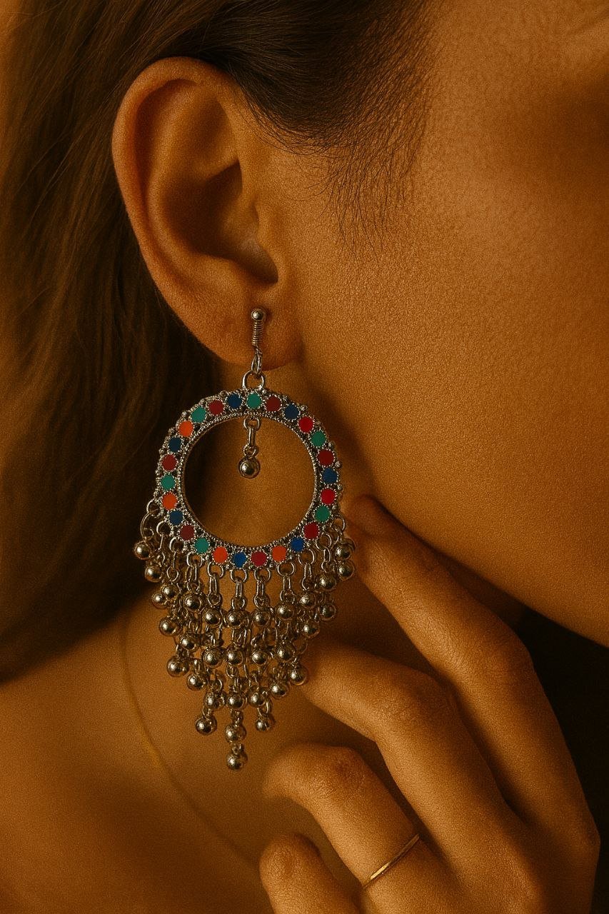 oxidized earrings, ghungroo earrings, boho statement earrings, traditional jewellery, round ethnic earrings, festive accessories, ADRI TRIBE, Indian jewellery, only on A2Cart.in